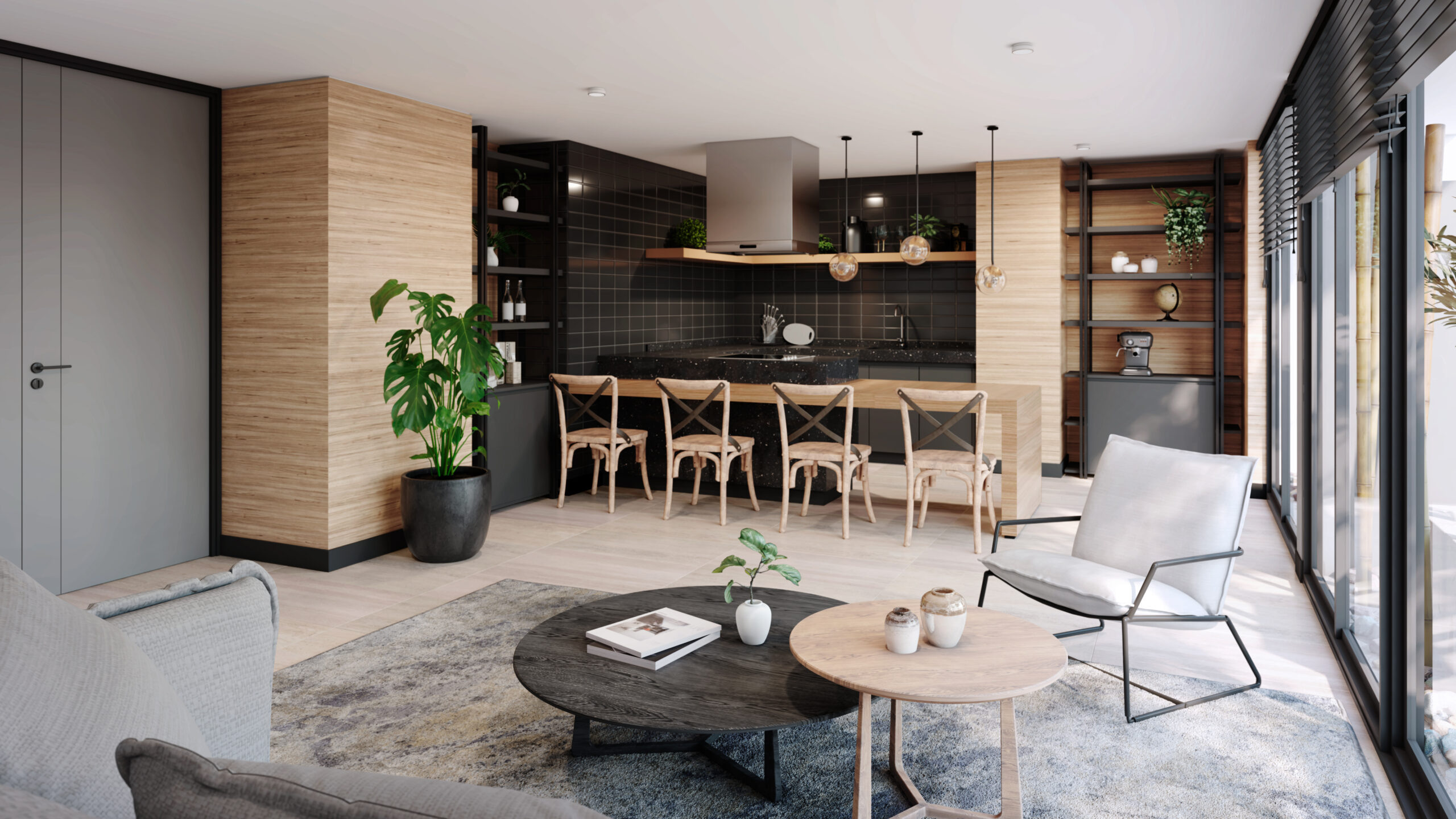 - Cocina con vitrocerámica, horno eléctrico y campana retráctil.