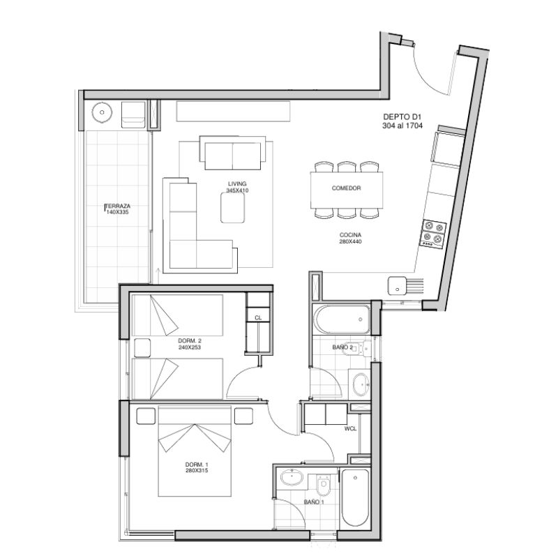 - Baños con ventana terminaciones en porcelana, cerámica y PVC, equipados con tina esmaltada, vanitorio con mueble y griferías monomando.
